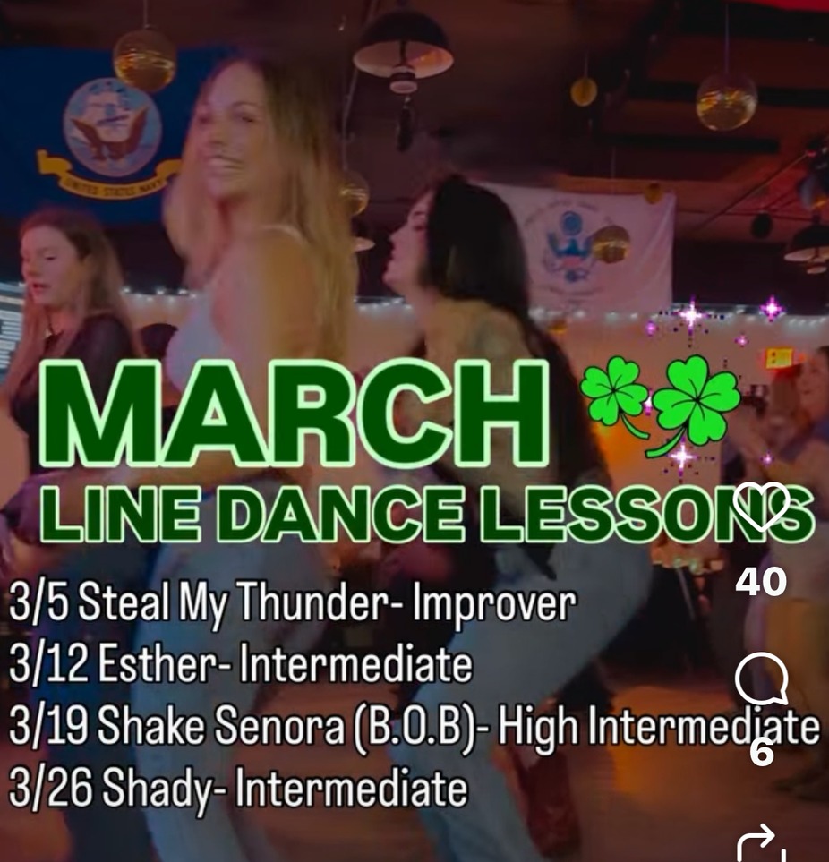 Dancing starts at 7pm. Free line dance lesson starts at 7:45 pm